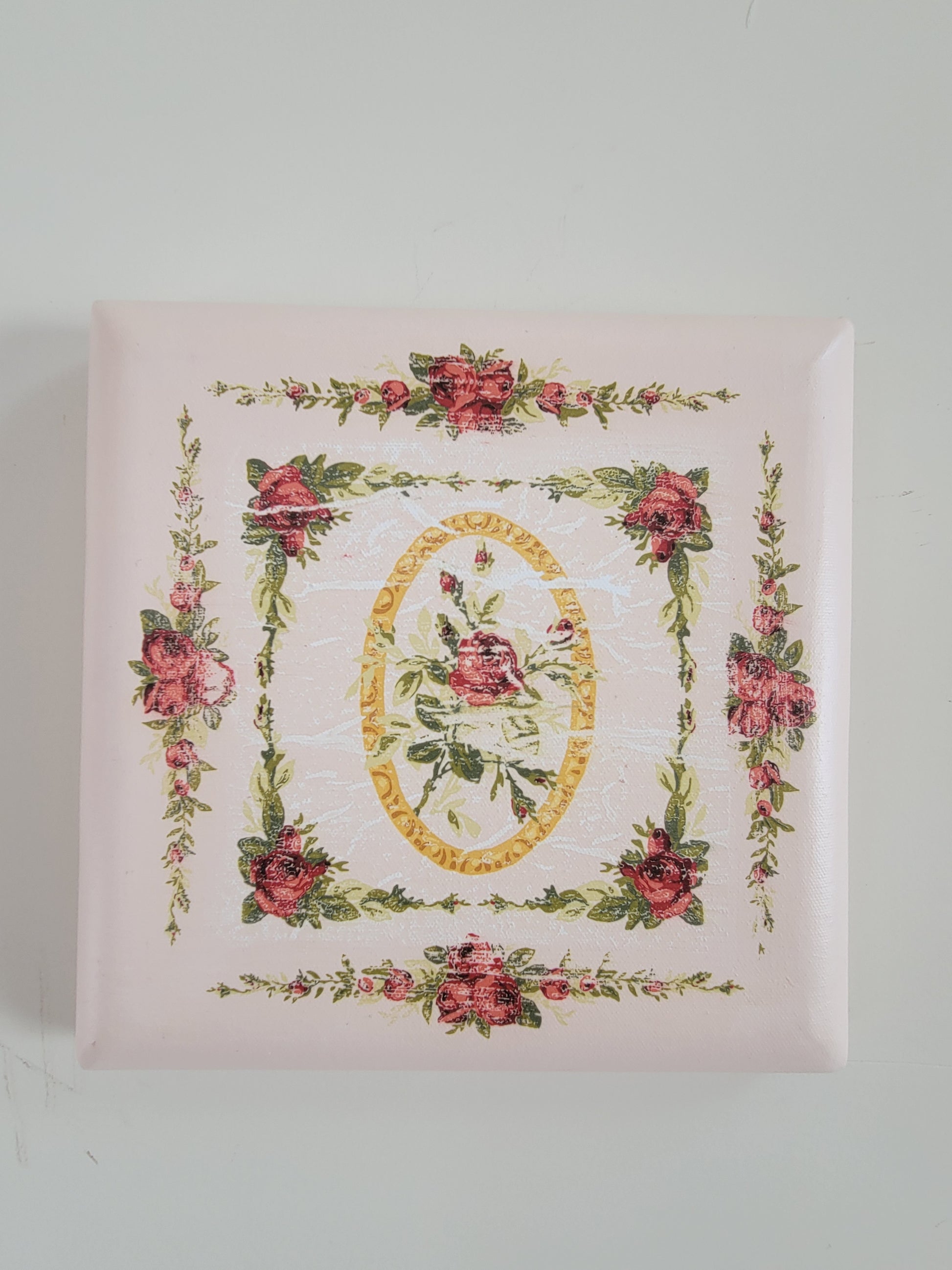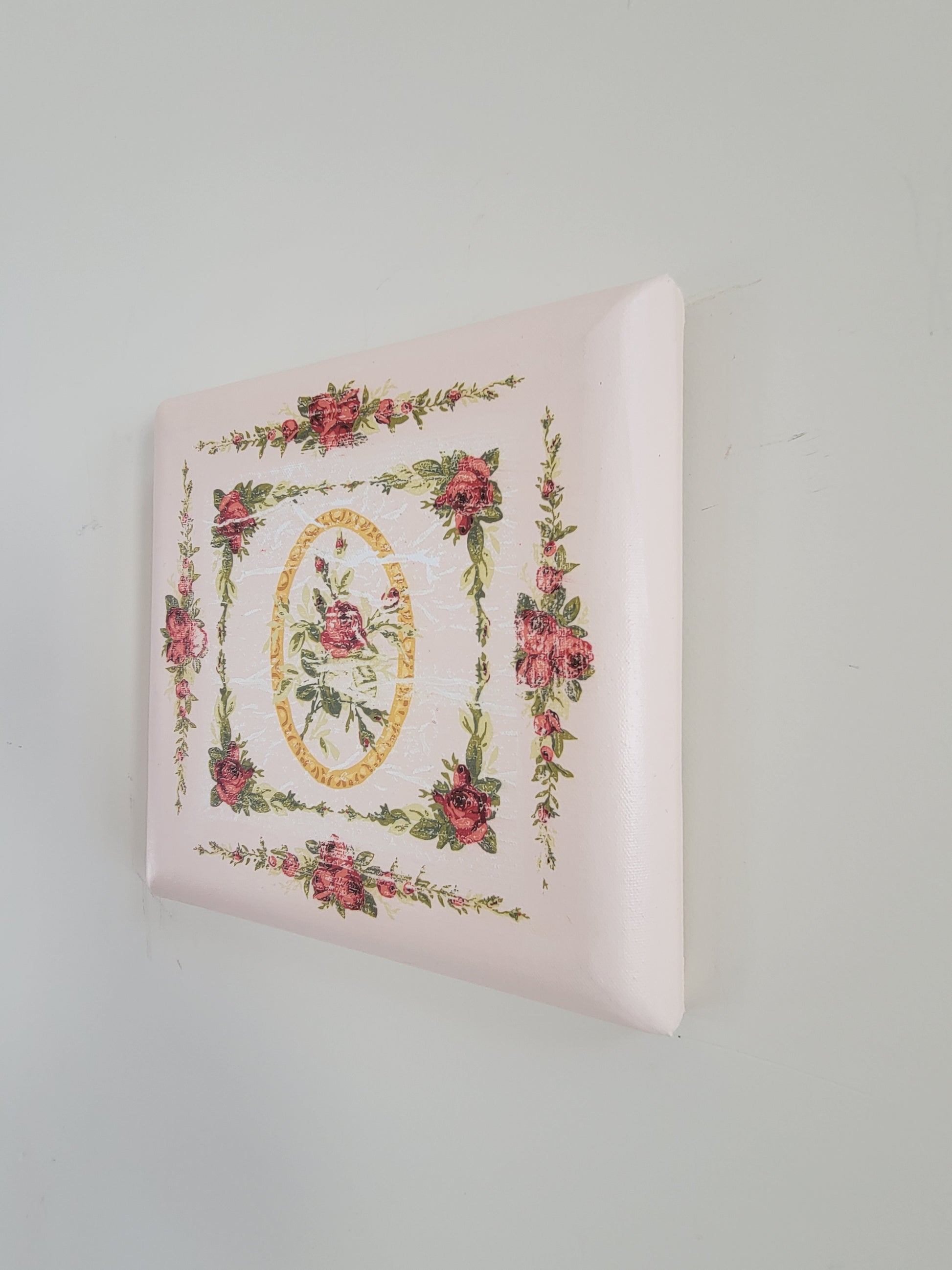 Get that Vintage Shabby Chic look with this hand crafted pink 10x10 canvas wall art.