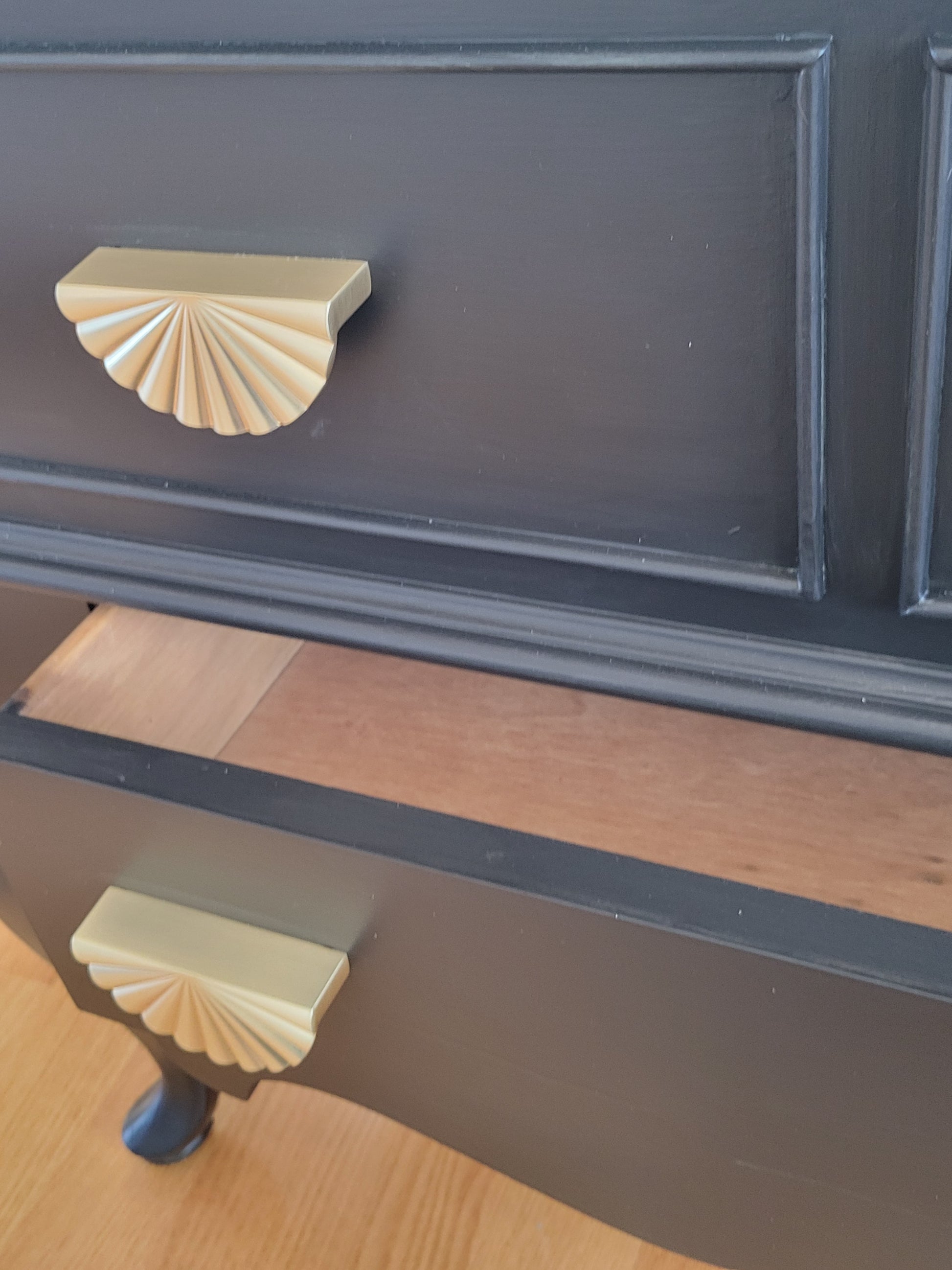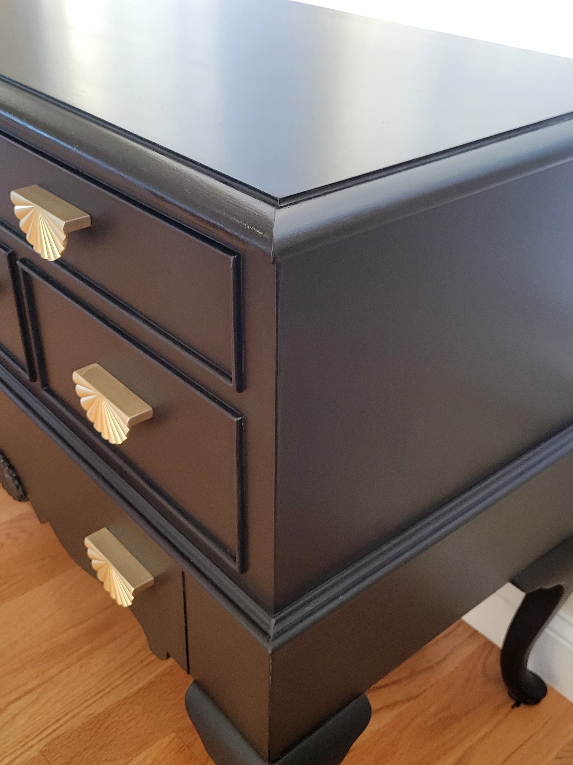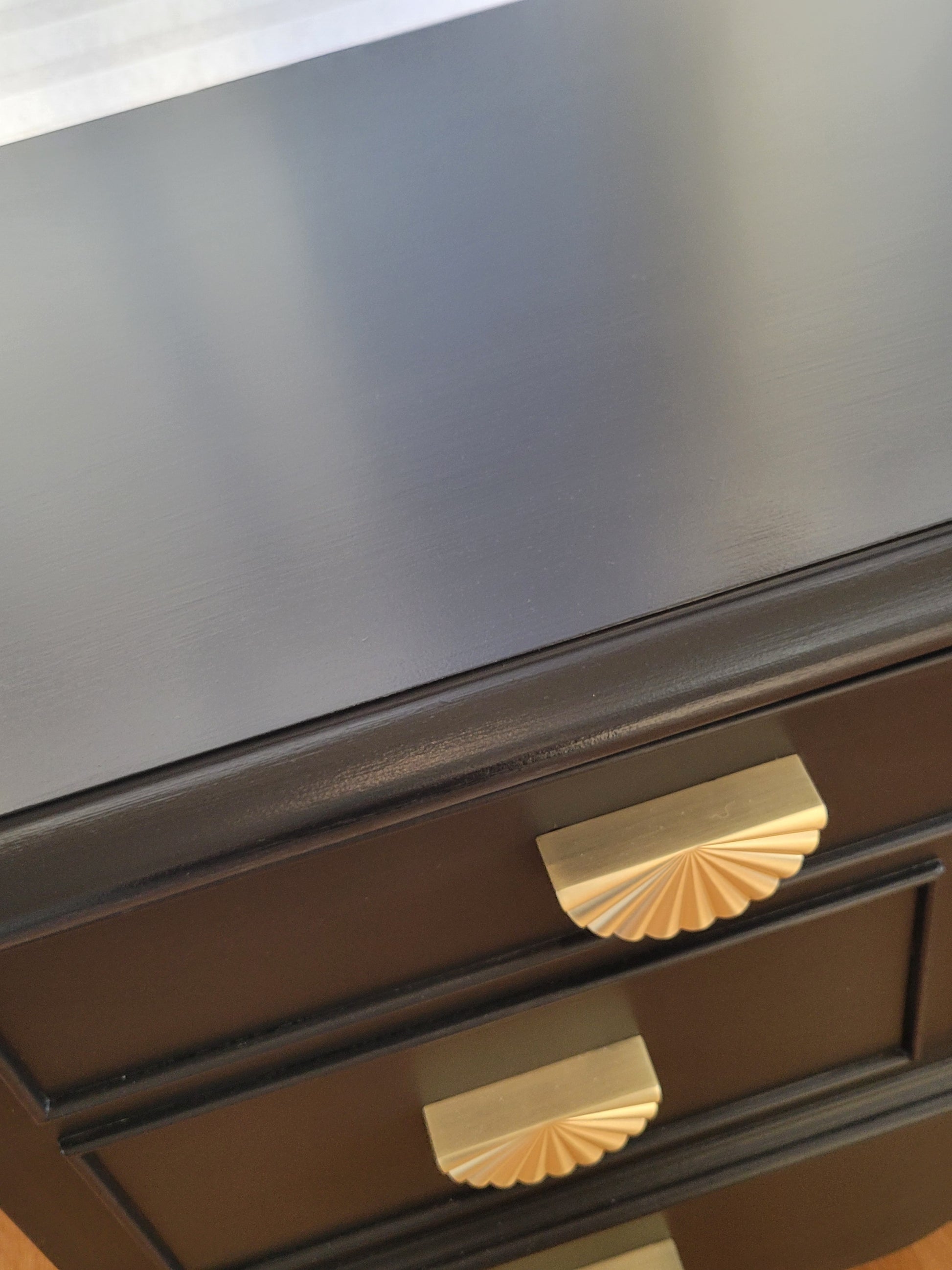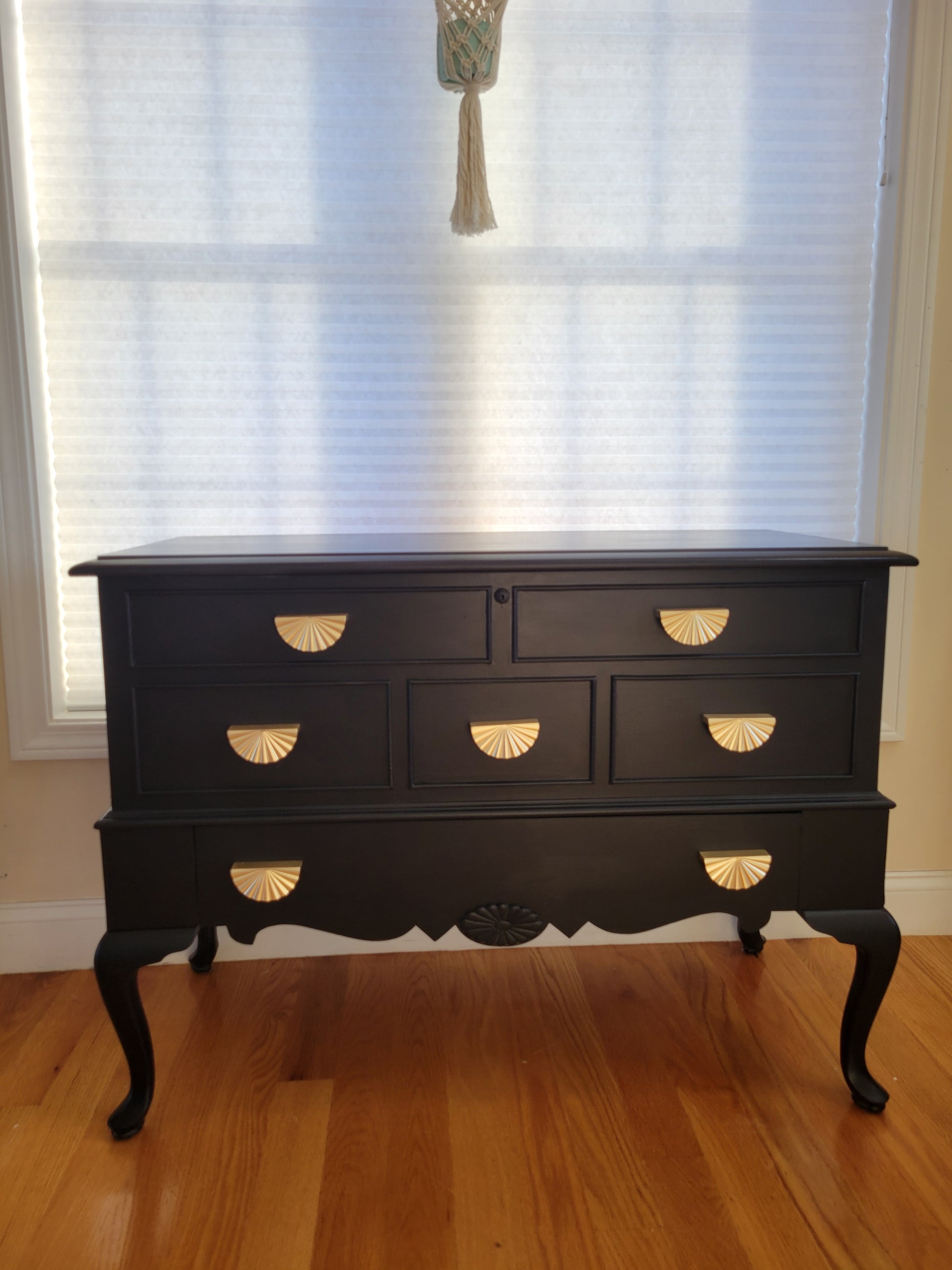 This Lane Cedar Chest is in pristine condition. It's got a good size chese and a bottom drawer. Locks have been removed for safety. Painted in a Jet Black and coated on top with hemp oil. The knobs are the icing on the cake.