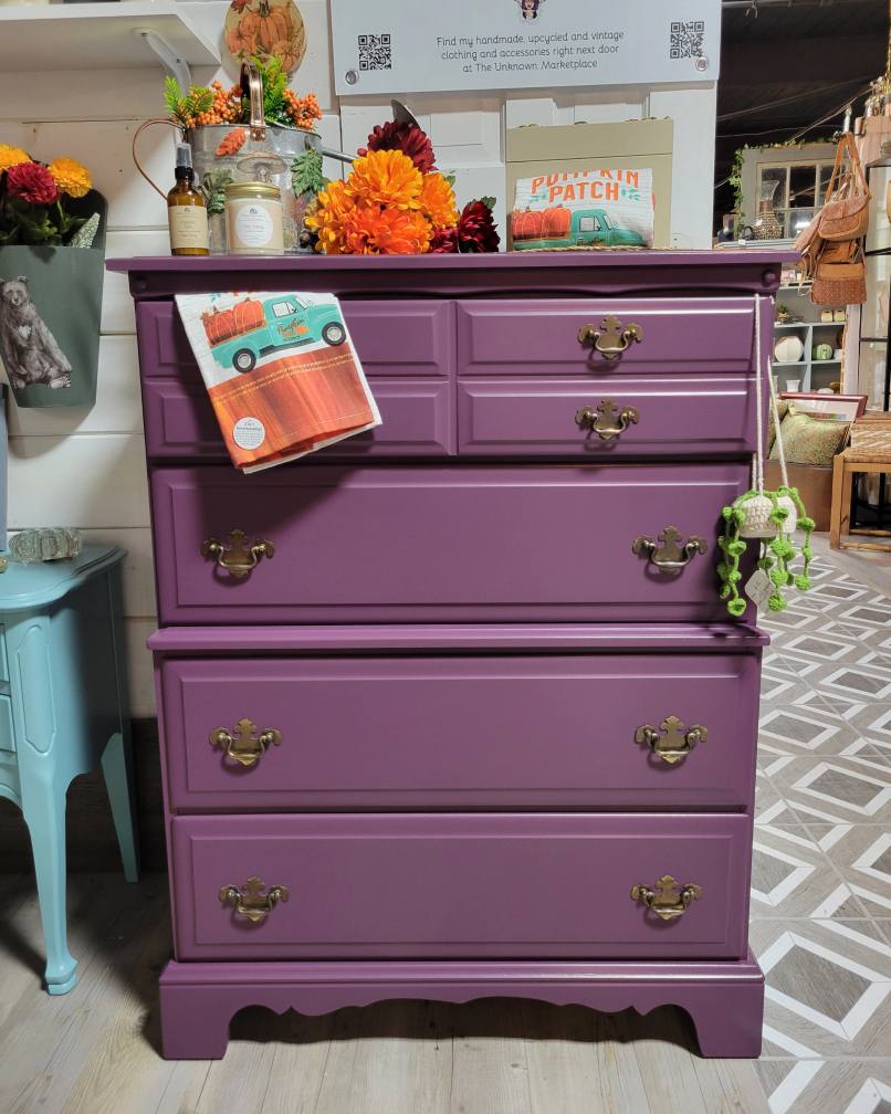 This solild maple chest of drawers has been refininshed, repaired and turned into a whole new piece.