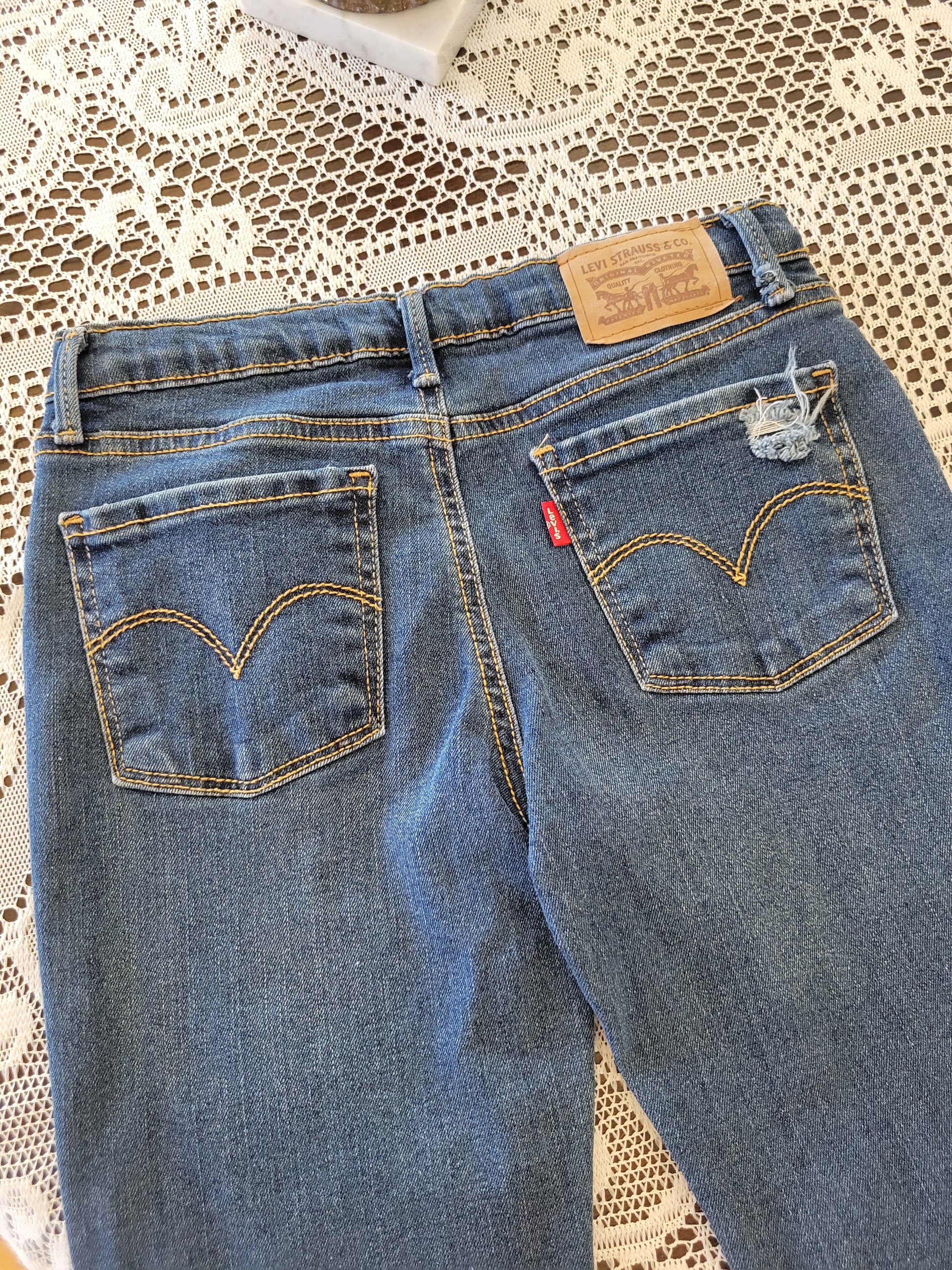 This pair of Levis 710 Super Skinny jeans have been embeished with birds, flowers and hearts.